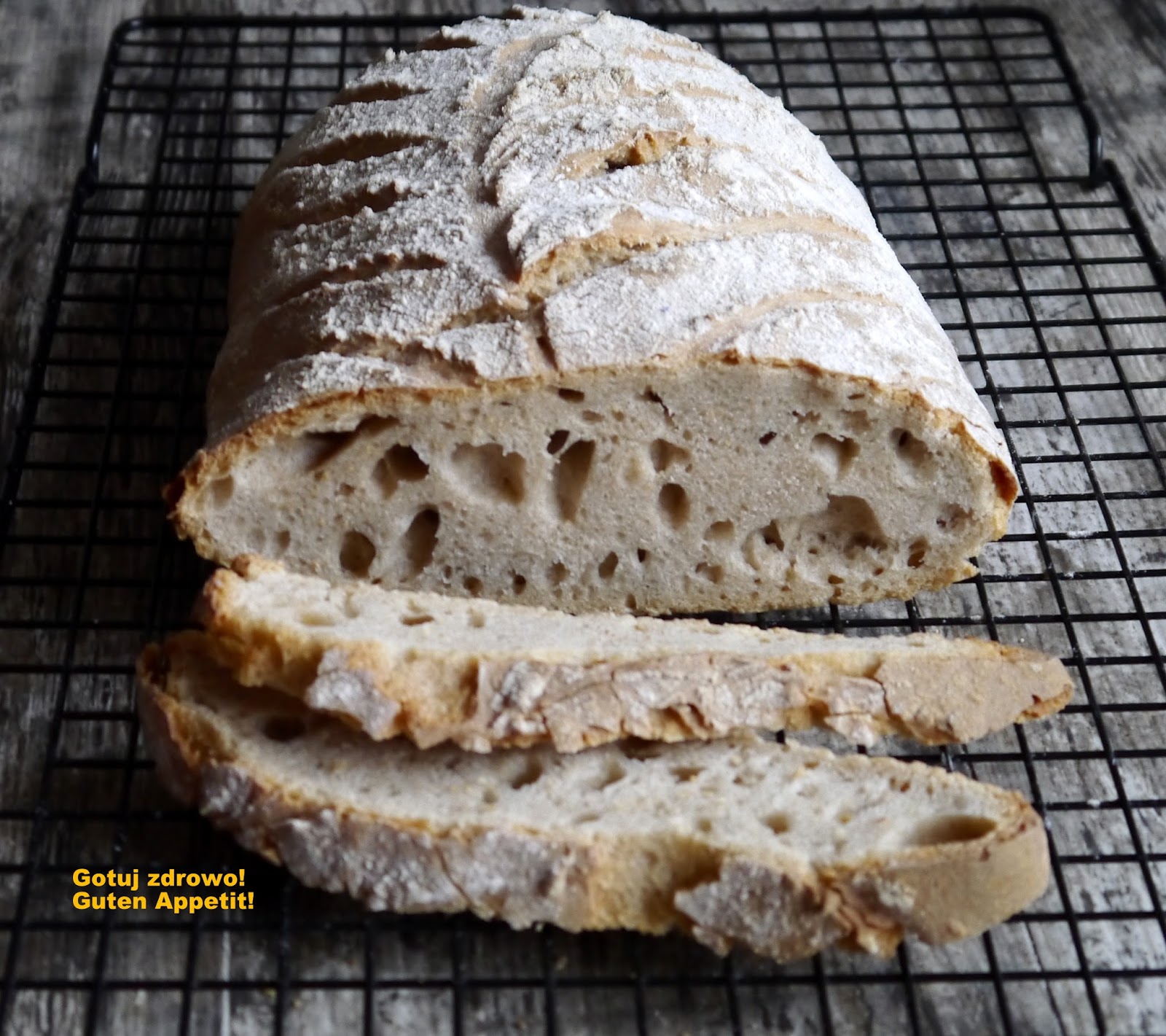 Pieczenie chleba na blaszce to niezbyt trafiony pomysł, dlatego pewnie nie wyrósł jak powinien. Bardzo słabo nabierał koloru. Całe szczęście, że nie porwałam się na 2 bochenki.