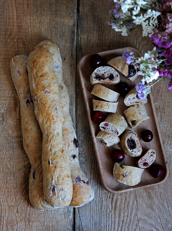 Powoli kończy się już sezon na wiśnie, ale póki jeszcze można dostać je na straganach, proponuję dodać je do lekko słodkiego ciasta drożdżowego, razem z gorzką czekoladą. Z tak przygotowanego ciasta można uformować bułki, albo cienkie i podłużne paluchy, które będą super przekąską piknikową w ostatni weekend wakacji.