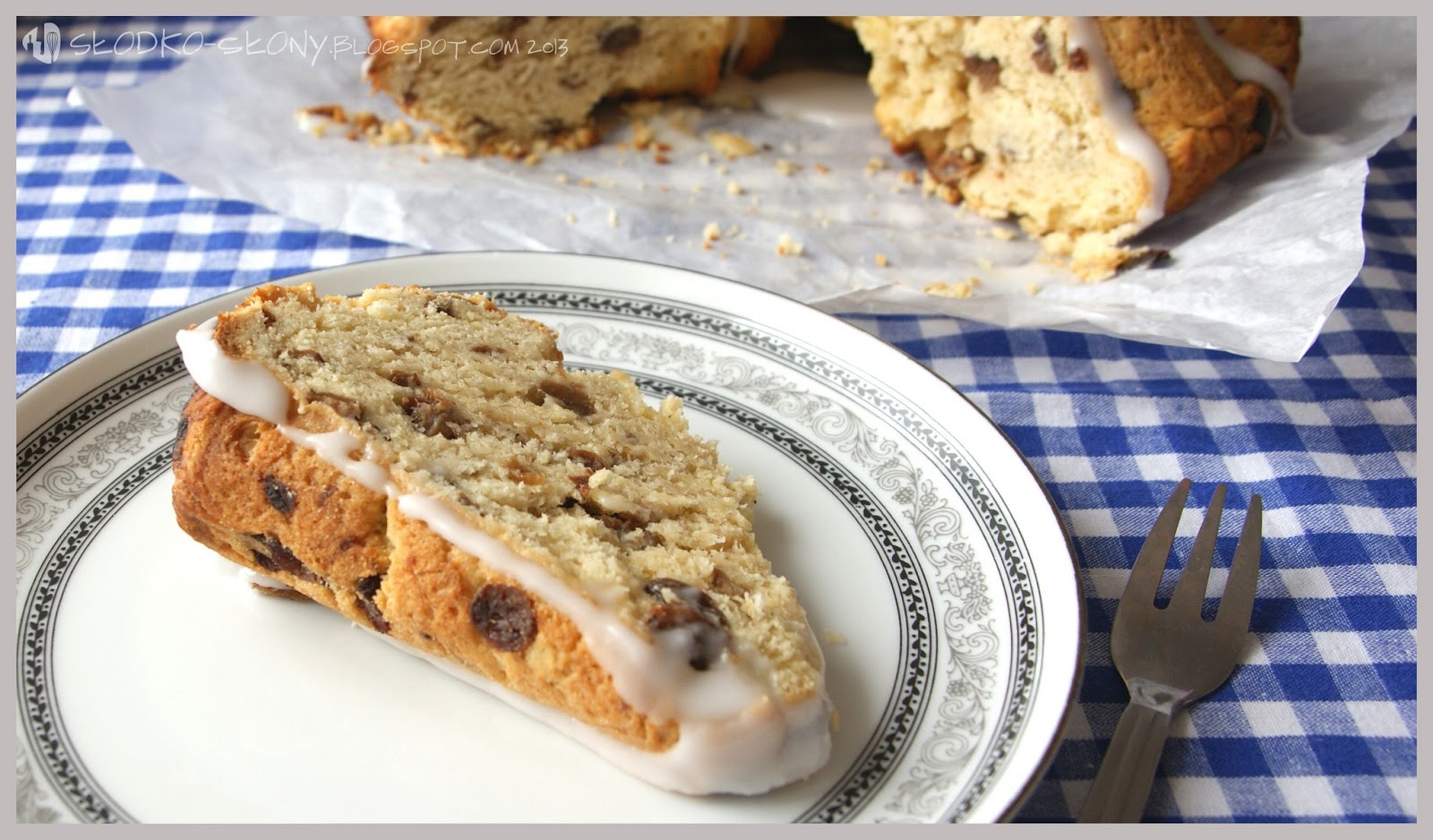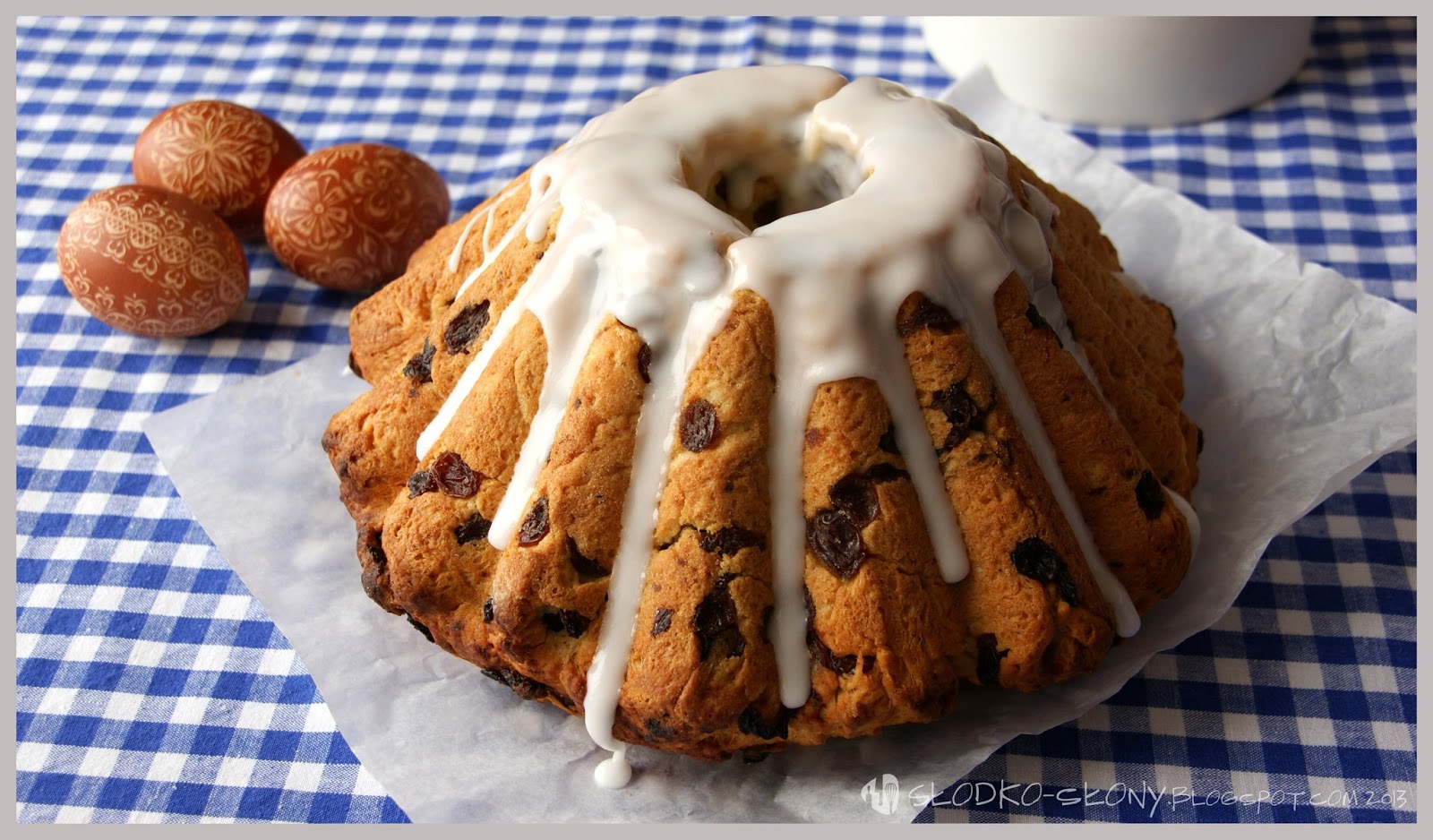 Składniki: · 650g mąki · 50g świeżych drożdży · 250ml mleka · ¾ szkl. cukru · 250g masła · 5 żółtek · szczypta soli · ½ startej gałki muszkatołowej · skórka otarta z 1 cytryny · 200g rodzynek
