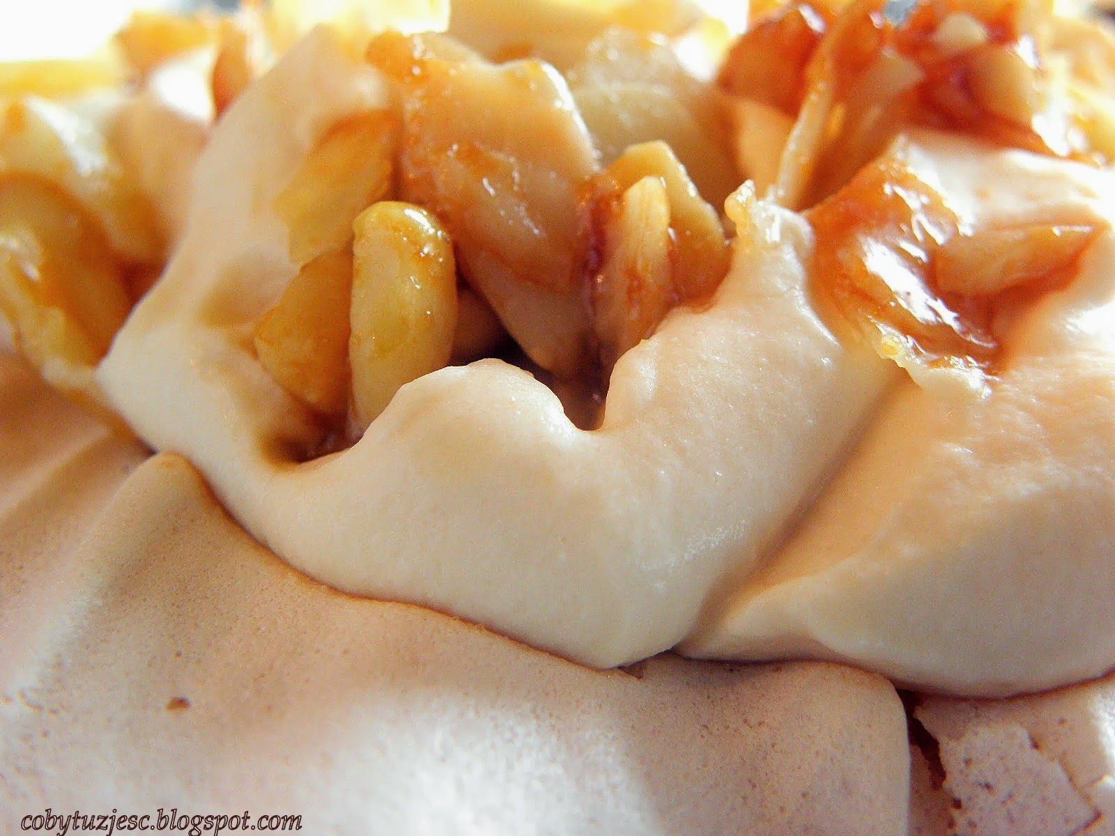 Pawlowa z kajmakowym kremem i migdałami w karmelu