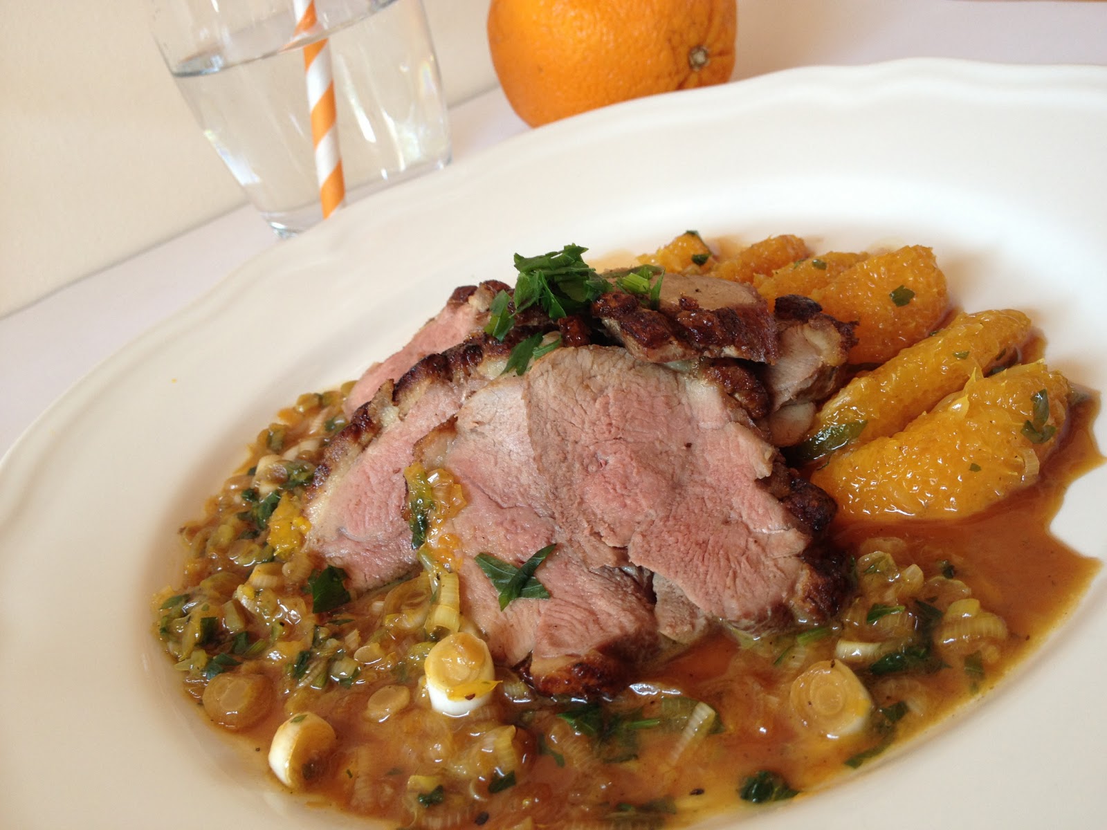 Tymczasem dziś zapraszam na kaczkę... To chyba moje ulubione mięso... Dziś proponuję podać pierś z kaczki na różowo, koniecznie z chrupiącą skórką... Do tego sos pomarańczowy z dymką i chińskim winem ryżowym... Przysięgam... Mogłabym jeść ją codziennie...