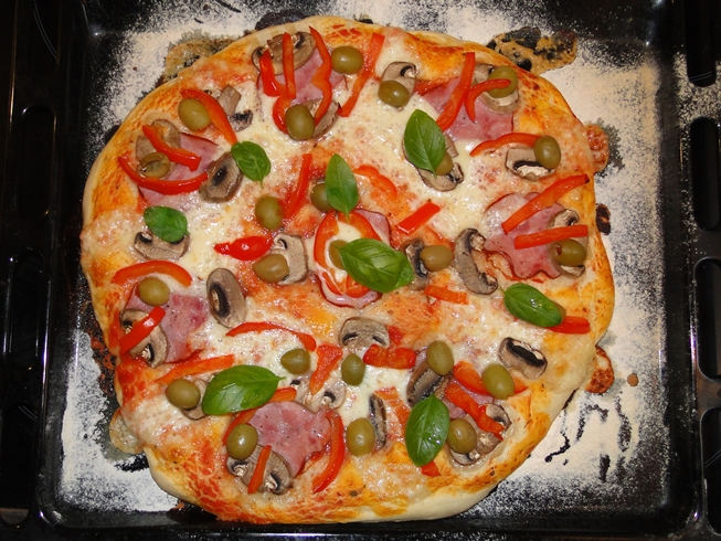 Pizze robię dość często zazwyczaj w wersji tradycyjnej z żółtym serem. Ostatnio jednak postanowiłam zastąpić go plasterkami mozzarelli. Efekt okazał się bardzo smaczny, a dodatek świeżej bazylii idealnie podkreślił aromat składników. Z pewnością wrócę jeszcze do takiej kompozycji. Polecam!