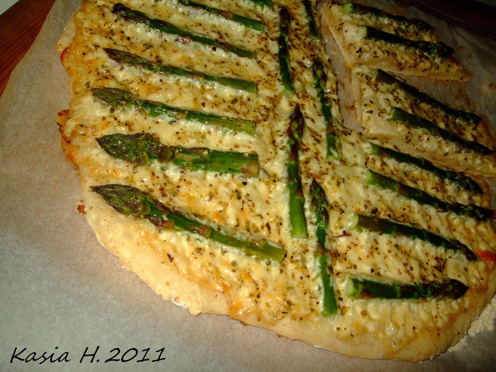 Pizza ze szparagami i sosem śmietankowym z cebulką: