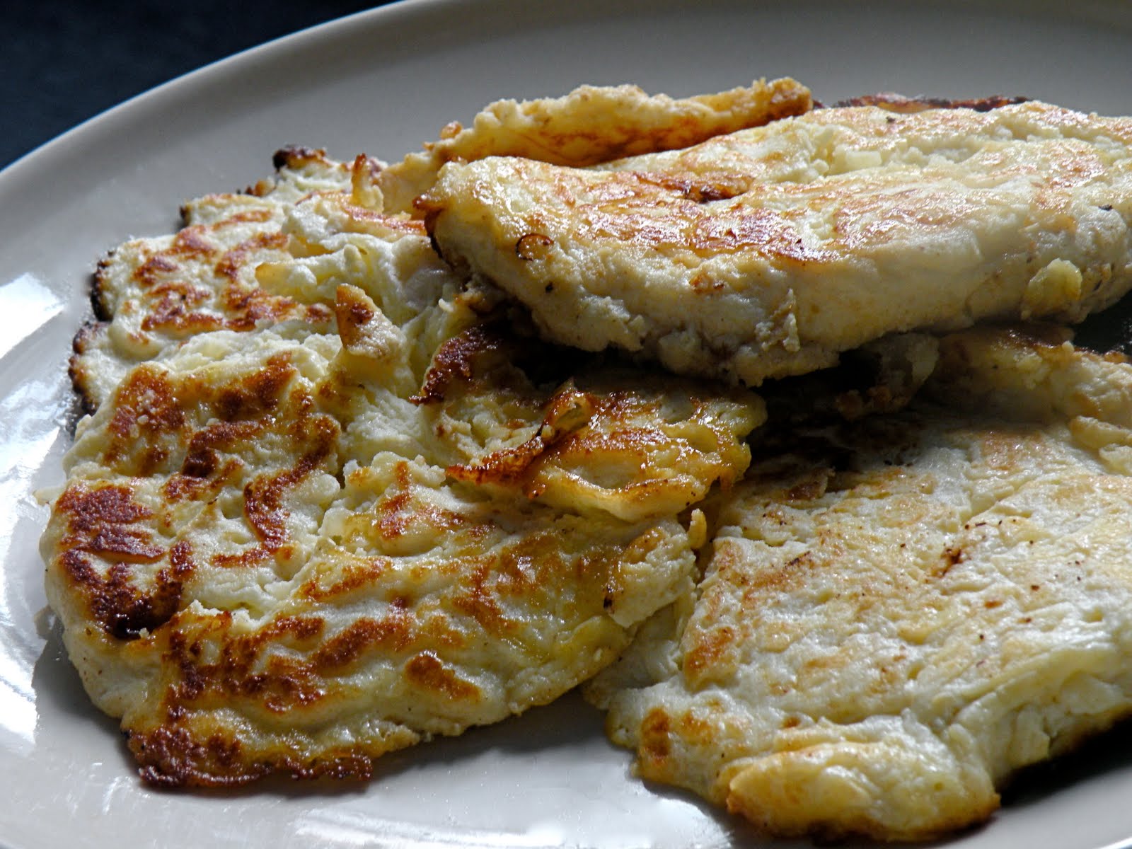 Bardzo serowy smak placuszków przełamany został jabłkami. Dość specyficzny smak, ale dobry ;) Trochę się obawiałam efektu, bo w końcu nie używa się w tym przepisie mąki, ale jak widać placki są "całe i zdrowe". Użyłam niekwaśnych jabłek, przez co placki wyszły aż nazbyt słodkie - posypanie cukrem pudrem było zbyteczne. Najlepsze po wystygnięciu.