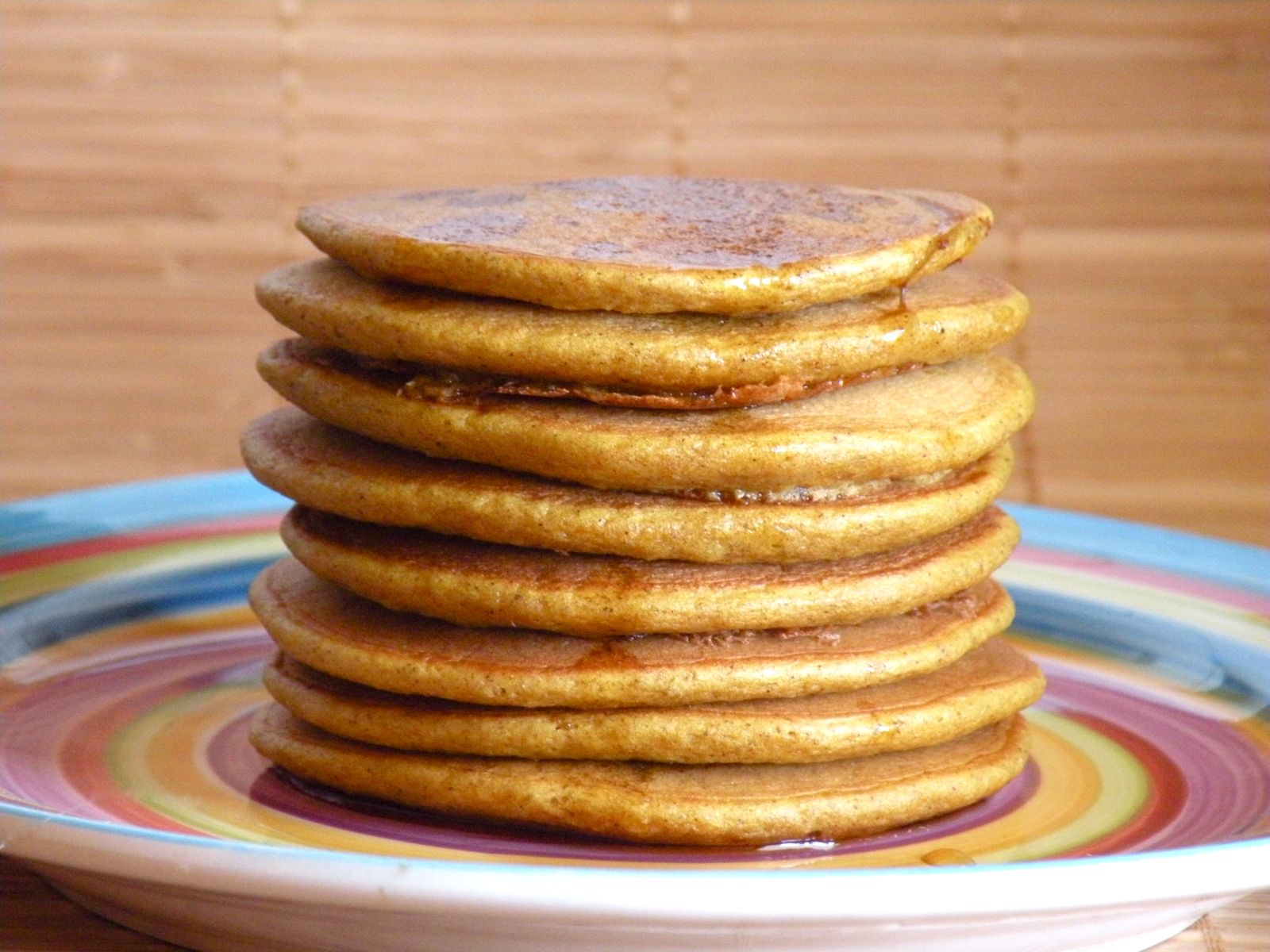 Do wąskiego i wysokiego naczynia wlać mleko, dodać jajko i startą dynię. Całość potraktować blenderm. Składniki mokre wlać do suchych i dokładnie wymieszać. Odstawić do "przegryzienia" na czas rozgrzewania patelni.Placuszki smażyć z obu stron na rumiany kolor na suchej patelni (1 łyżka ciasta to jeden placuszek).
