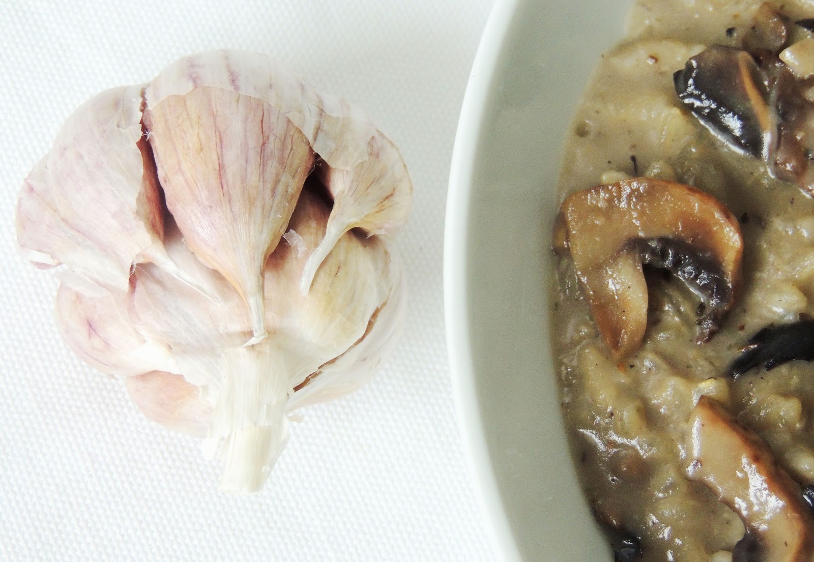 Do tego risotto użyłam dużych, mocno dojrzałych pieczarek. Poznacie je po tym, że ich kapelusze są prawie płaskie, otwarte i czasami popękane na obwodzie. Takie właśnie są najlepsze, mają najwięcej grzybowego smaku, i takie wam polecam. Ma to jednak pewną wadę: risotto z nimi jest dużo ciemniejsze, niż z młodymi grzybami. Ale komu by to przeszkadzało ;)