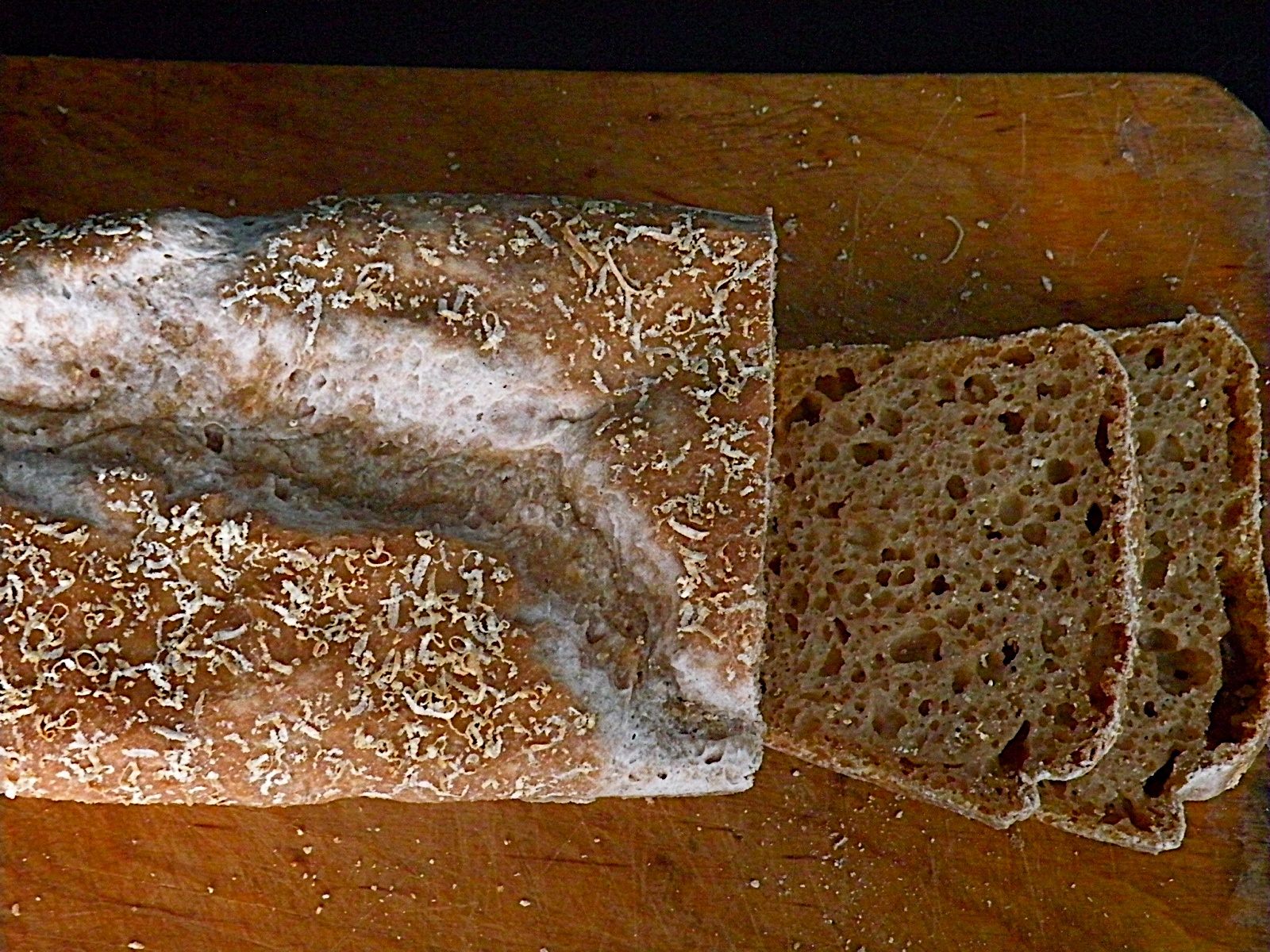Chleb jest po prostu genialny. Nie za wilgotny, nie za suchy. Miękki, delikatny i podziurawiony. Oscypka (tudzież parmezanu) i chilli można dodać według własnych upodobań. W podanych niżej proporcjach nadają ciekawy posmak, choć nie można powiedzieć, że są jakoś specjalnie wyczuwalne. Osobiście daję więcej chilli, wtedy chleb nabiera ostrego charakteru.