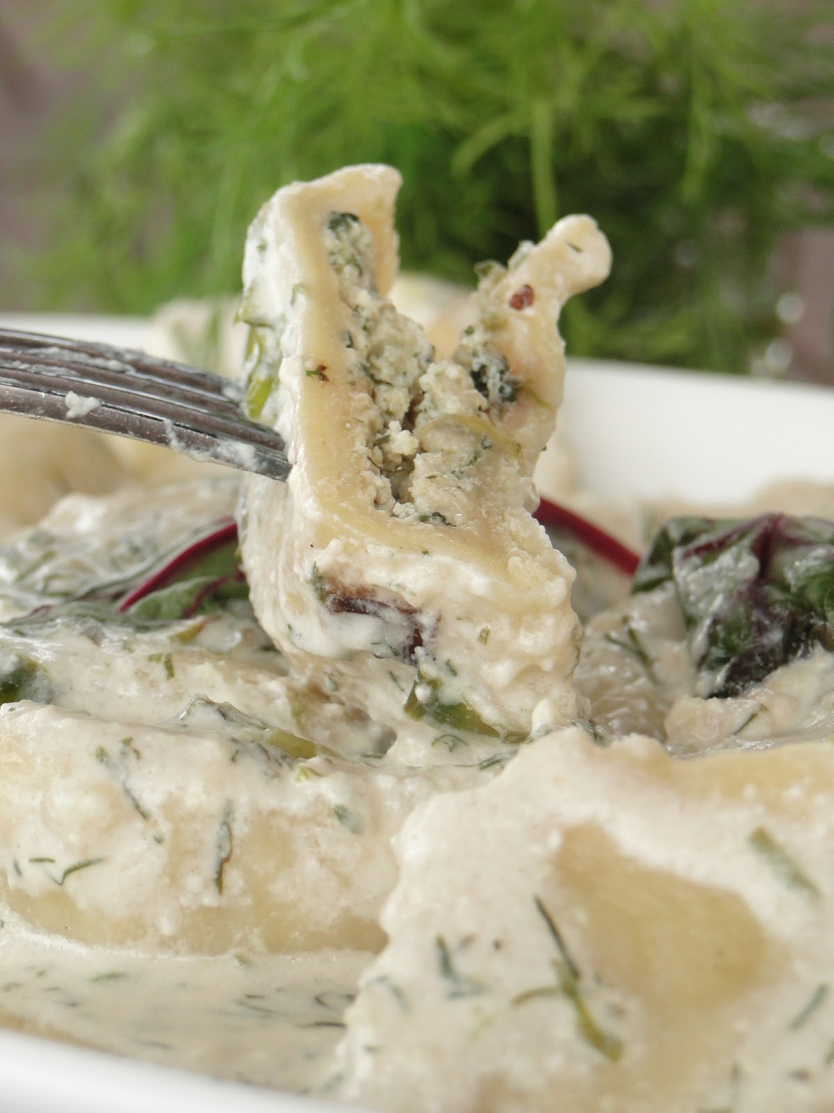 Ravioli z botwinką w sosie koperkowym