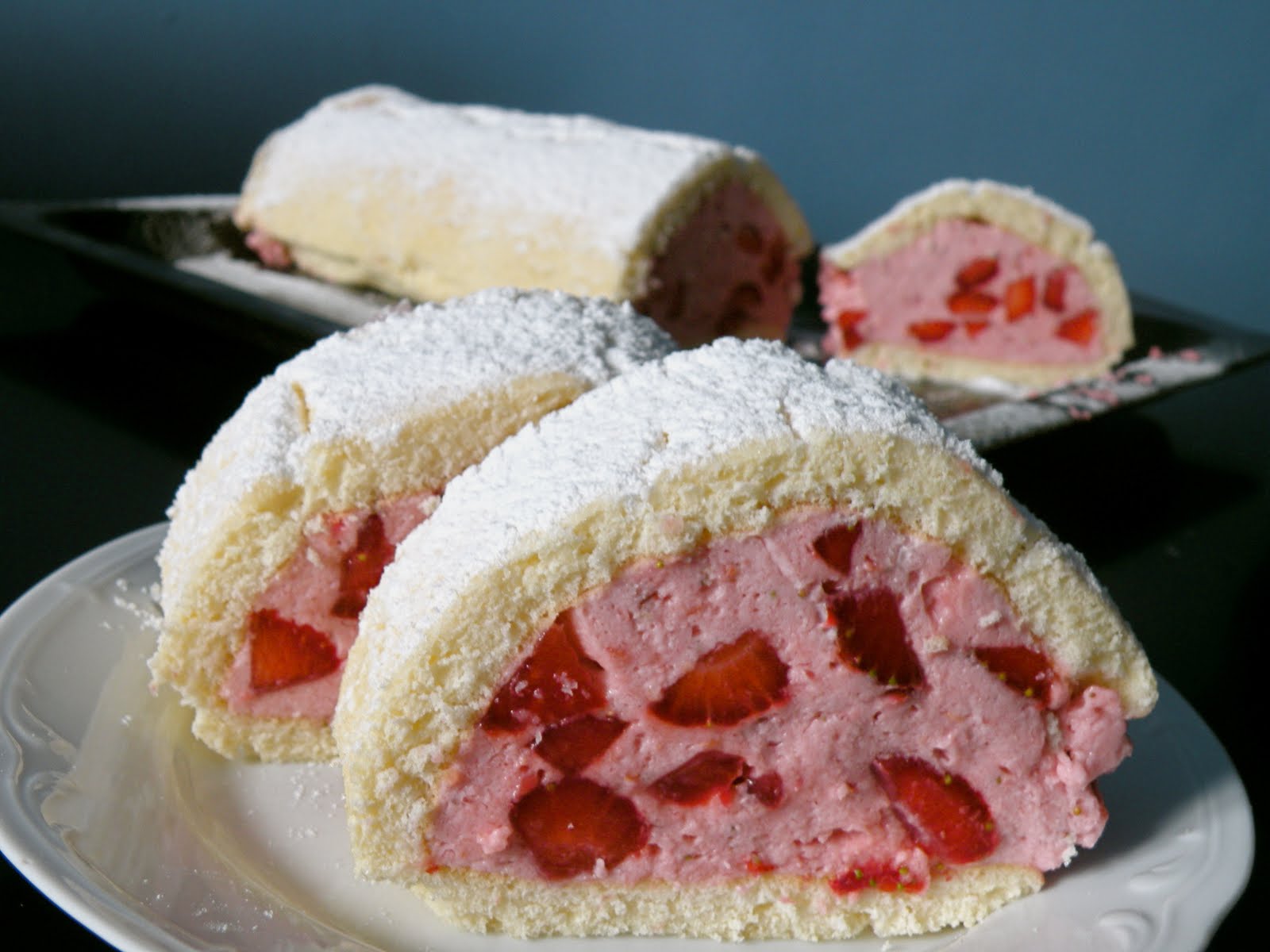 Rolada śmietankowo - truskawkowa