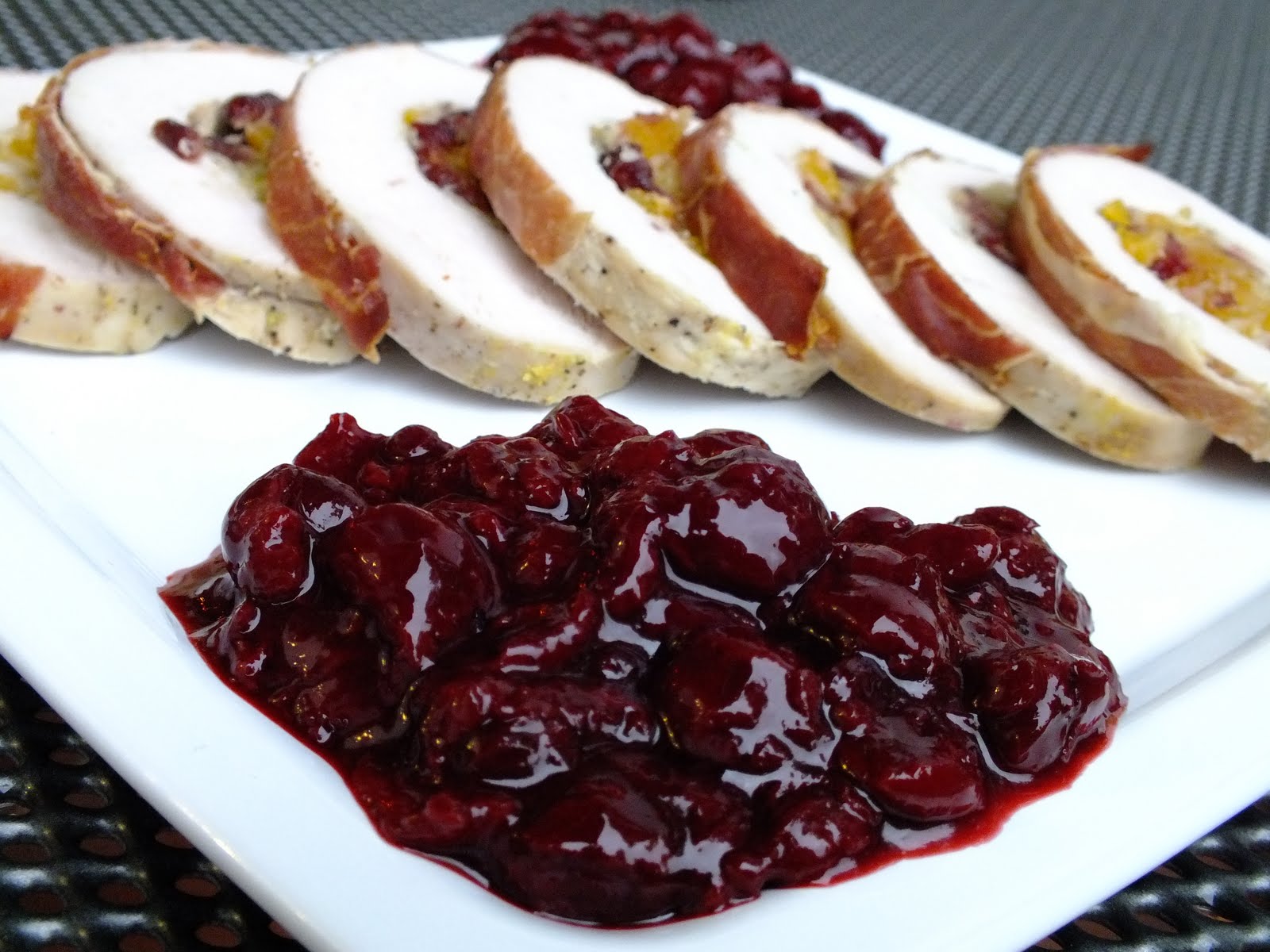 Rolada z indyka w szynce parmeńskiej z sosem wiśniowym