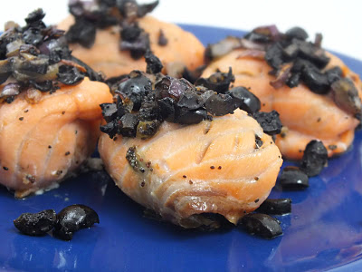 Roladki z łososia wędzonego, nadziewane oliwkami i kawiorem... Danie lekkie, delikatne, szybkie do przygotowania, a zarazem bardzo, ale to bardzo smaczne. Proste, a zarazem wykwintne. Doskonale smakują na ciepło i na zimno. Na specjalne okazje, święta i nie tylko :)