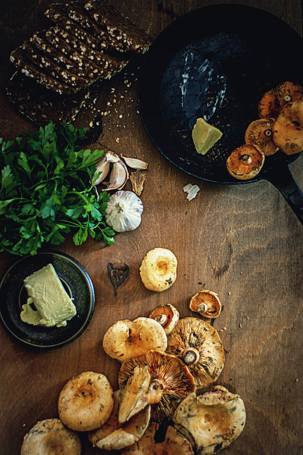 Toast with buttered mushrooms, garlic and parsley You will need: