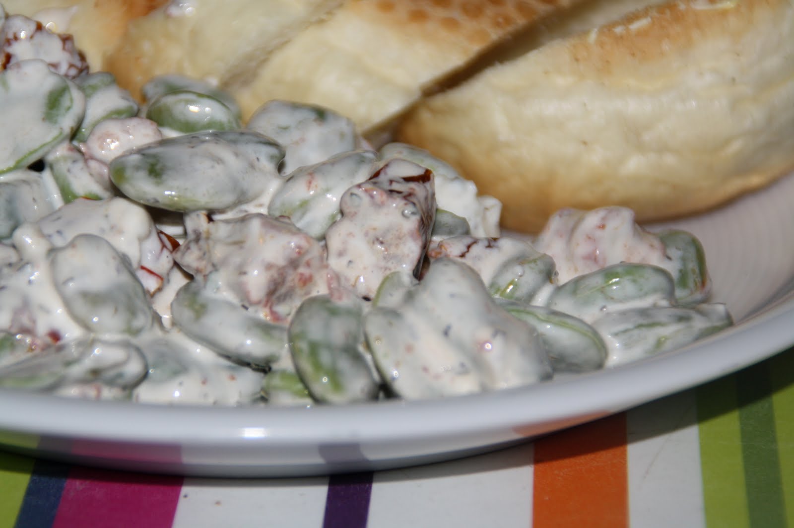 Jak już wspominałam, rodzinnie uwielbiamy bób. Szkoda że jego sezon jest taki krótki. W tym roku chyba go trochę zamrożę. Żeby nie było monotonnie proponuję sałatkę z suszonymi pomidorami.