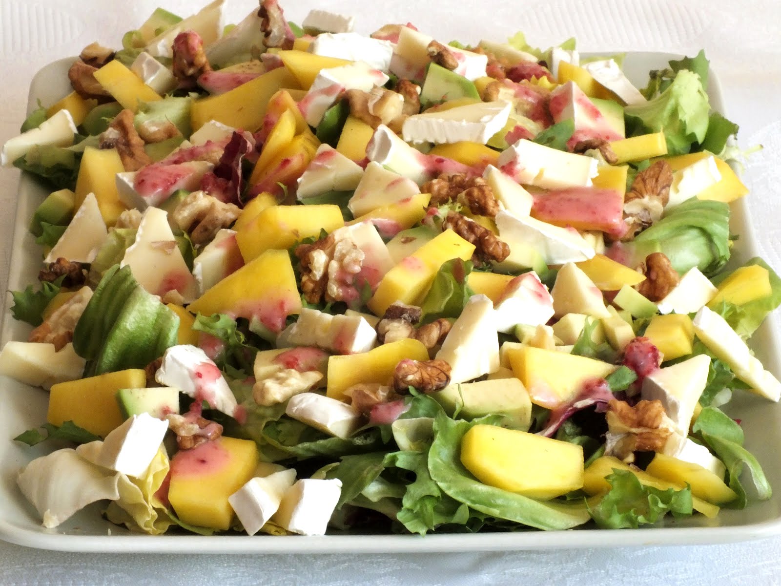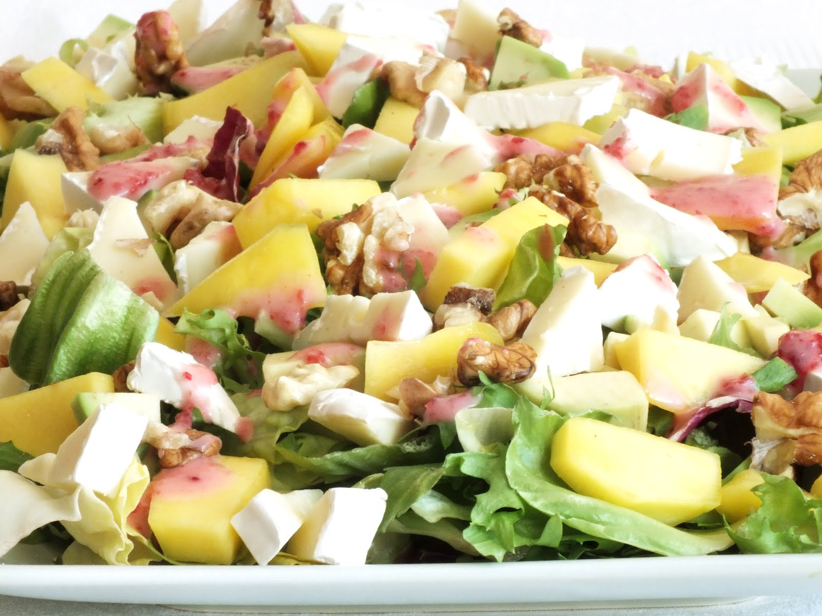 Lekka sałatka z mango, jogurtowym camembertem i pysznym dressingiem. Na wielkanocny stół, na lunch do pracy czy kolację – idealna na każda okazję. Polecam!