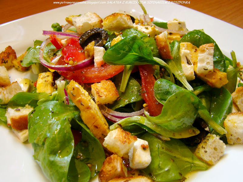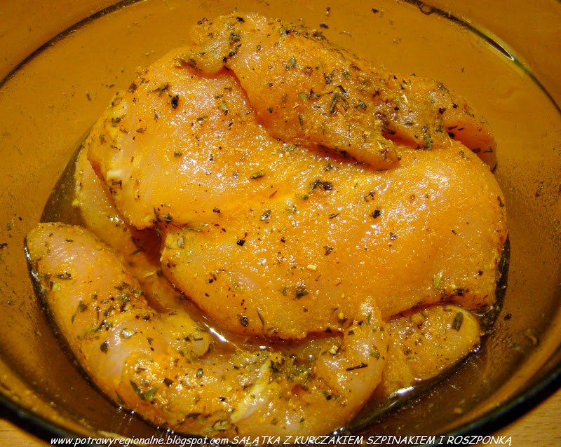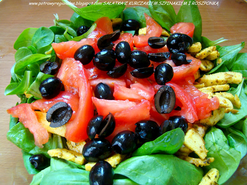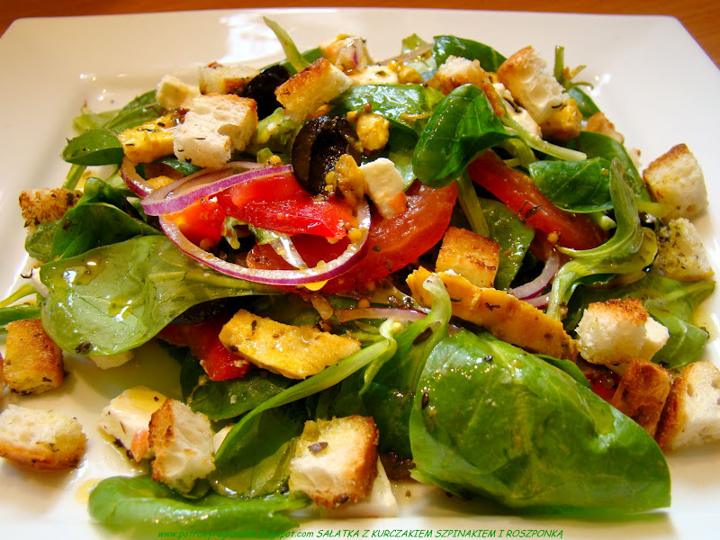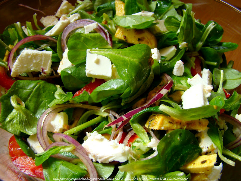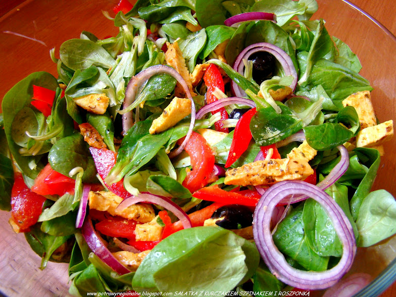 SAŁATKA Z KURCZAKIEM SZPINAKIEM I ROSZPONKĄ