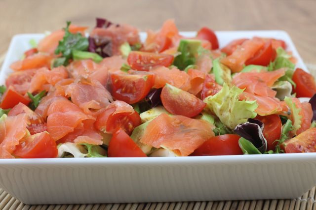 Sałatka z łososiem wędzonym podana na mieszance sałat, z dodatkiem awokado i pomidorów koktajlowych. Świetna na lekką kolację lub lunch z kawałkiem świeżego pieczywa. Zdrowa i dietetyczna sałatka właściwie na każdą okazję. Polecam :)