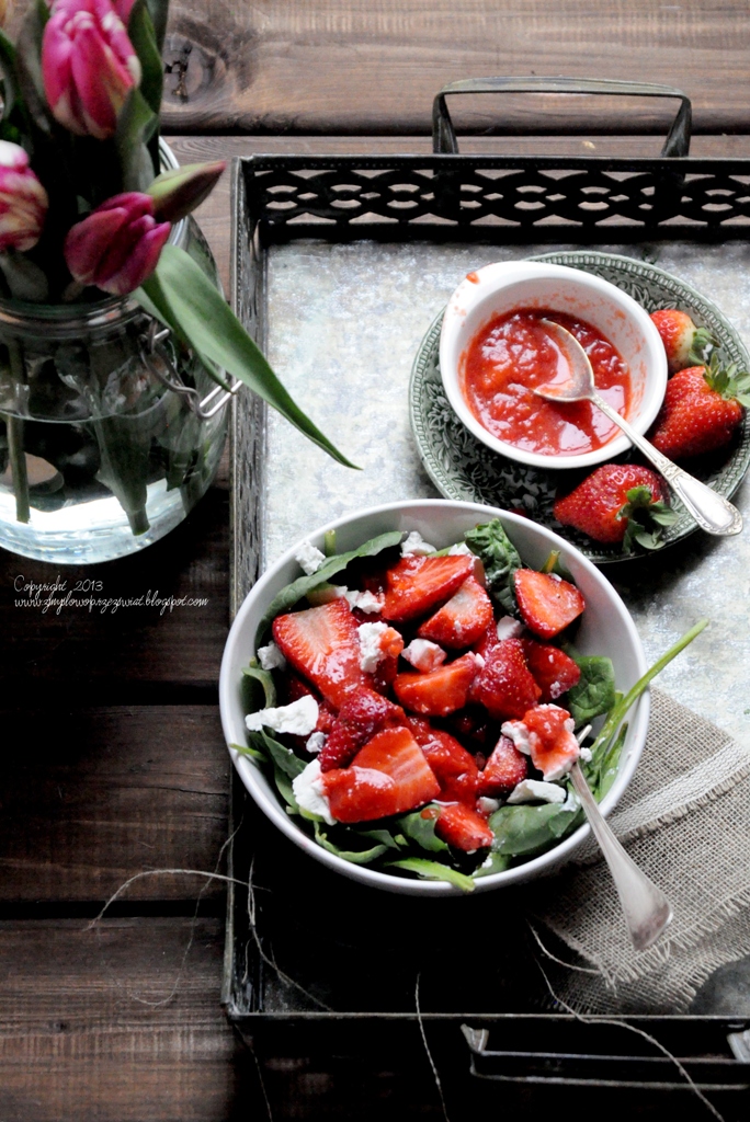 A na obiad (?) / lunch / posiłek, n i e gotuję. Robię sałatkę, z tych najszybszych, n a j l e p s z y c h . Spragniona truskawek. I świeżych smaków.