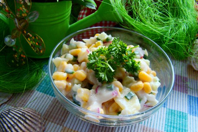 Sałatka ziemniaczana z rzodkiewką i kukurydzą