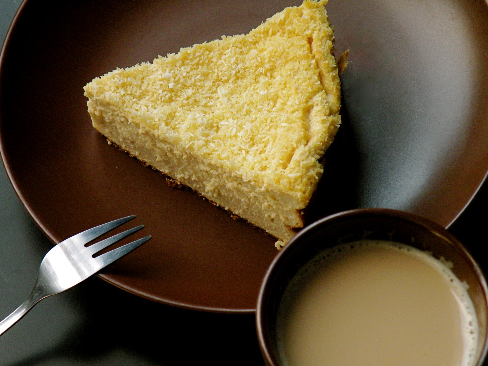 Prosty, ale smaczny sernik. Lekko kawowy posmak i aromat. Kokos z powodzeniem można zastąpić migdałami. Wersja bez tzw. spodu. Troszkę opadł, ale u mnie to norma w przypadku pieczonych serników.