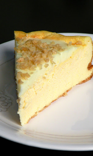 Ciąg dalszy mojej budyniowej fazy. Sernik prosty, smaczny i dość efektowny. Spód to już szczyt lenistwa - andrut na dnie tortownicy. Masa serowa bez dodatków, za to kremowa i dość wilgotna - taka jak lubię. Budyń robi za przysłowiową wisienkę na torcie - aksamitny i rozpływający się w ustach. Oczywiście nie mogło zabraknąć orzechów, za którymi szaleję.Po raz pierwszy przy pieczeniu sernika miałam nadzieję, że... opadnie :) mały "krater" był niezbędny aby można było wylać budyń, który później nie wypłynie.