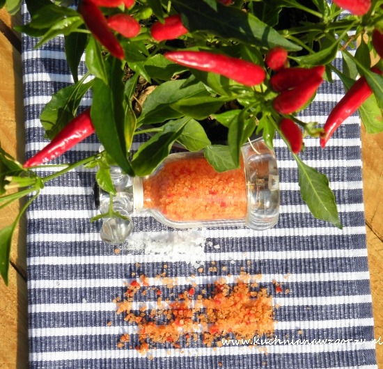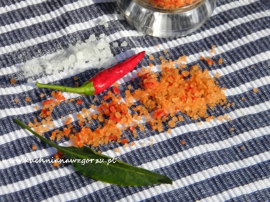 Sól z chili czyli domowy pomysł na przepyszny dodatek do dań. Papryczki chili są teraz niedrogi, więc spokojnie można zrobić większą porcję.