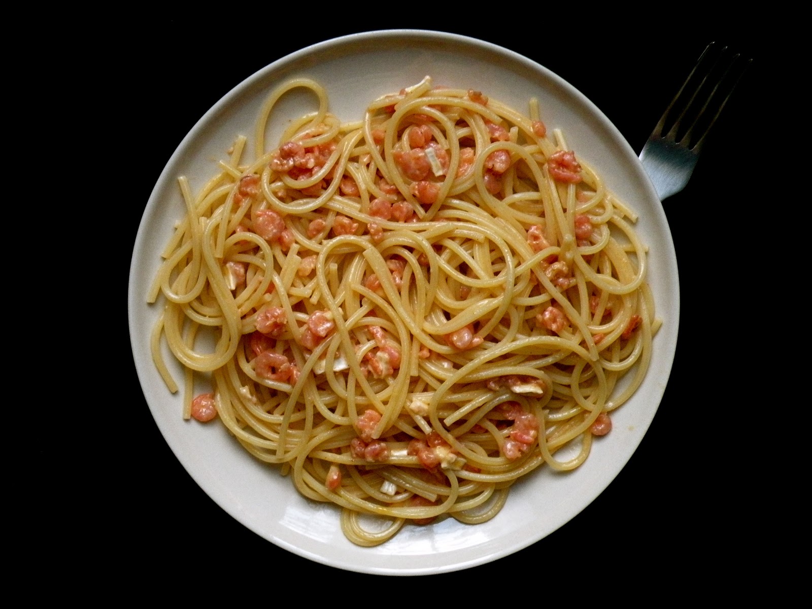 Moje ulubione danie ostatnich dni. Makaron, krewetki i ser pleśniowy to świetne połączenie smaków. No i bardzo ważne dla mnie - taki obiad robi się bardzo szybko. Przy okazji zastosowałam nową technikę przyprawiania potraw na patelni. Ostatnio w jakimś programie kulinarnym, kucharz wsypywał przyprawy na rozgrzany olej, przed dodaniem warzyw czy mięsa. Zabieg ten miał wydobyć ich smak i aromat. Nie wiem czy to siła sugestii, ale chyba rzeczywiście coś w tym jest :)