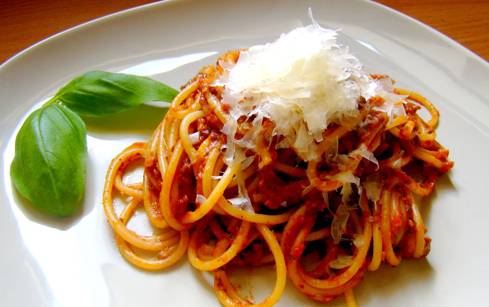 który następnie wymieszałam z sosem.Wyłożyłam spaghetti na talerz i posypałam startym parmezanem.Smacznego!