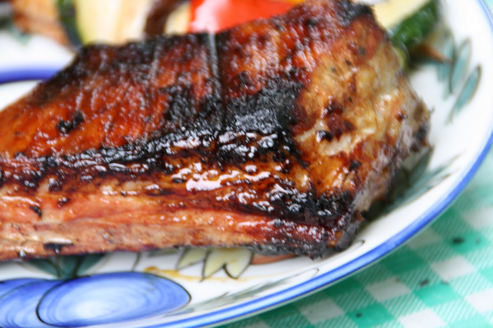 Żeberka pokrojone na porcje smarujemy gęstą marynatą i zostawiamy na noc. W trakcie grillowania kilkakrotnie smarujemy żeberka. Pycha.