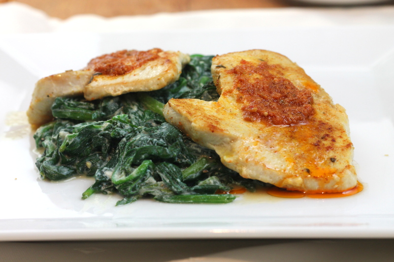 Sznycle z indyka z pesto na duszonym szpinaku