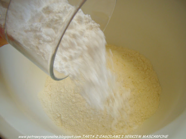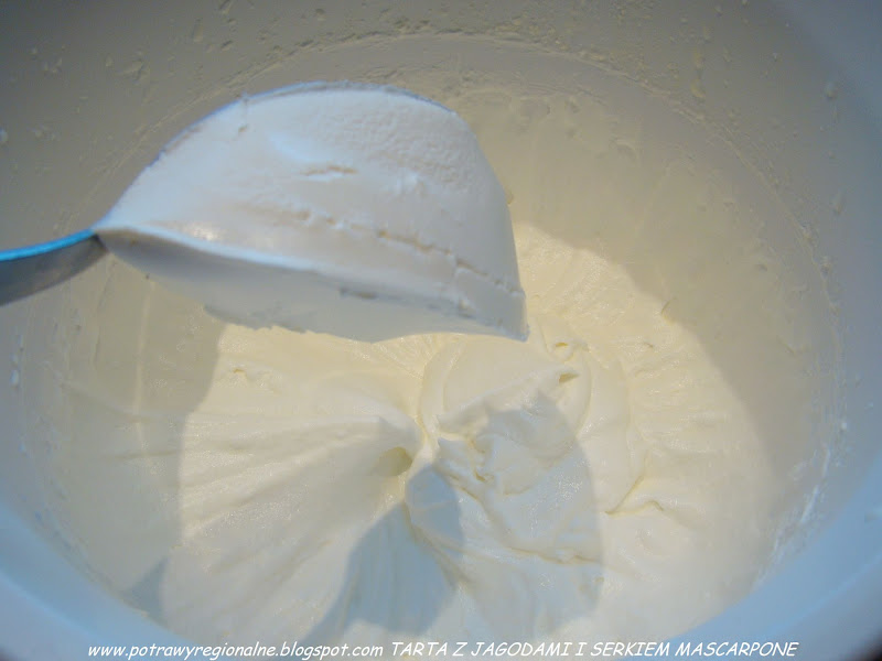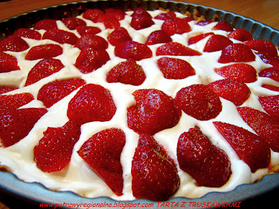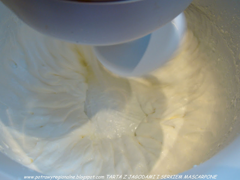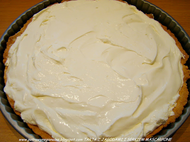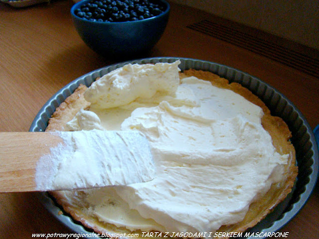 Wyłożyłam masę kremowo-serową na wystudzoną tartę.