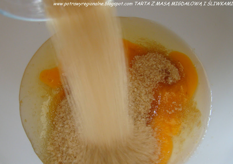 Do miksera wbiłam jajka i wsypałam brązowy cukier.