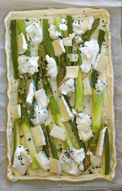 Tarta ze szparagami, cukinią, bazylią i trzema serami