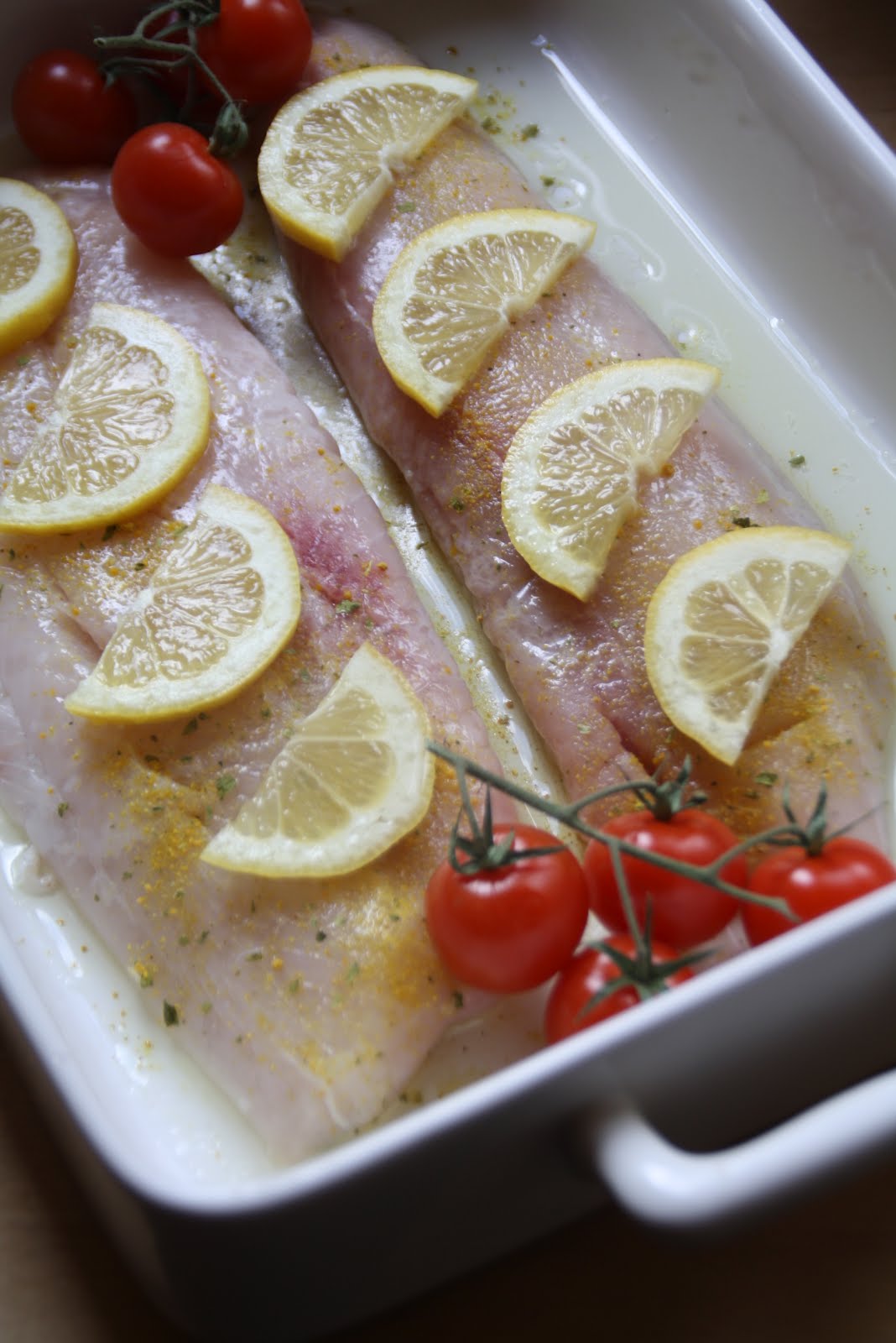 Przygotowania zaczęłam od porów. Pokroiłam je w talarki, udusiłam na maśle  i podlałam winem. Od czasu do czasu mieszając poczekałam do odparowania wina. Rybki oprószyłam sola i pomarańczowym pieprzem i ułożyłam w naczyniu do zapiekania skropionym oliwą. Na wierzchu znalazły się plasterki cytryny i też troszkę oliwy. Rybki zapiekłam jednocześnie z pomidorkami koktajlowymi - 20 minut w 180 stopniach. Na talerze wyłożyłam ciepłe pory, na to rybkę. Podałam z ryżem - pycha!