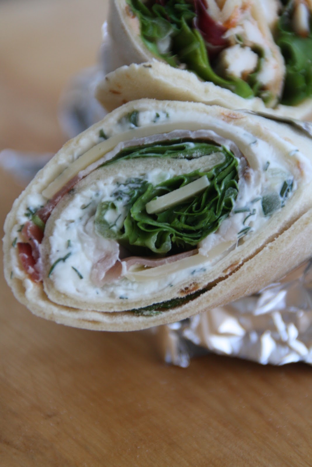 Nadzienie:Składniki pasty mieszamy na jednolita masę. Smarujemy tortille, na wierzchu kładziemy plaster szynki dojrzewającej, plasterek żółtego sera i mix sałat i jeszcze troszkę startego albo porwanego sera. Ścisło zawijamy. Zabieramy ze sobą i cieszymy się, że nie mamy na śniadanie zwykłych kanapek :)