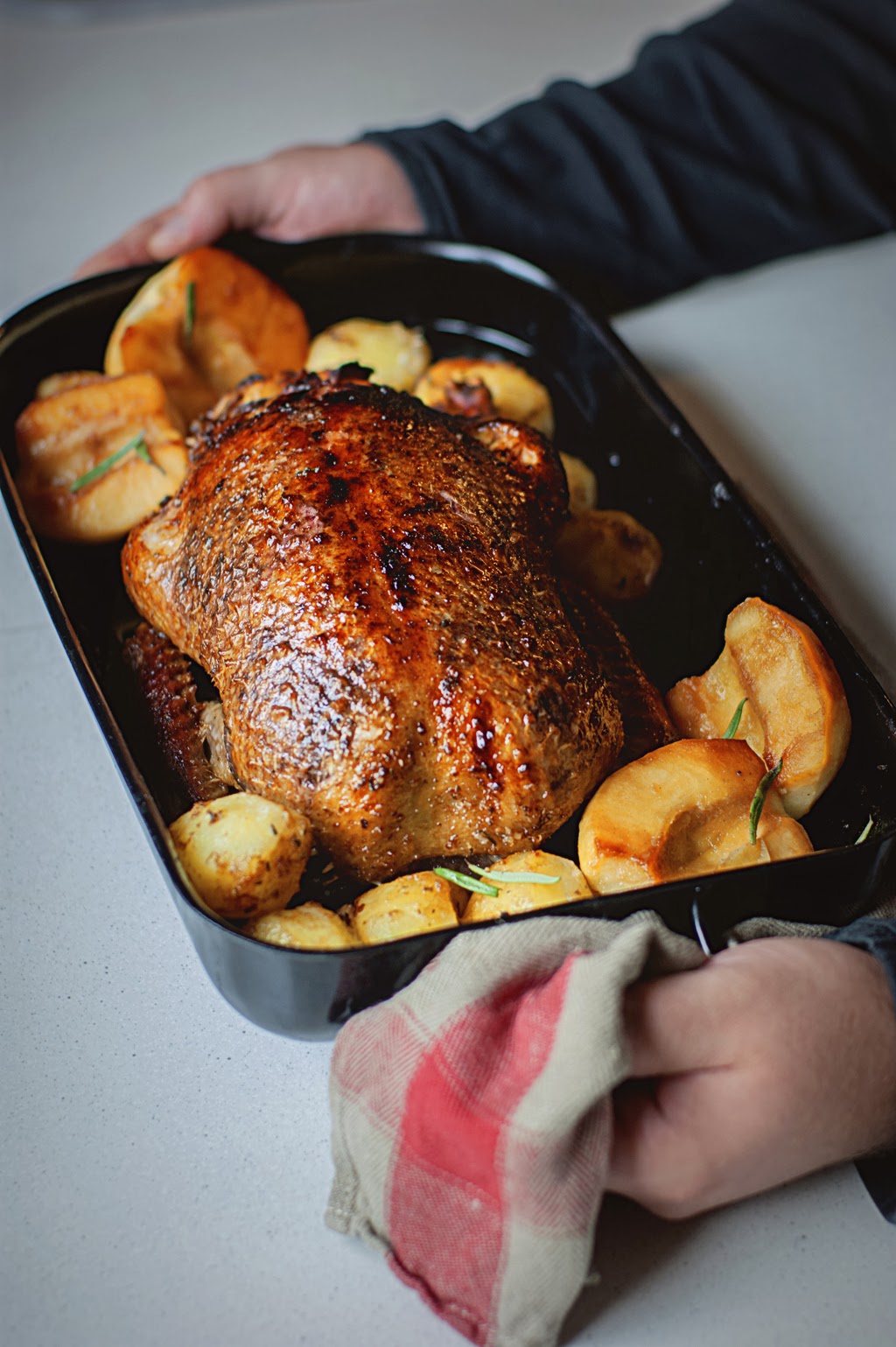 Rosemary duck with apples and oranges stuffing