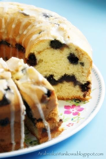 Każdy "coffee cake" , który do tej pory upiekłam zawierał cynamon (a powinien... kawę ? ;-) Ten także jest z dodatkiem tej przyprawy , tylko nie jestem pewna , czy rzeczywiście ona pasuje do jagód (tudzież borówek amerykańskich). Jeżeli nie jesteście wielbicielami cynamonu to radzę z niego zrezygnować , bo choć wcale nie dodaje się go tutaj dużo , to może tylko zepsuć smak zamiast go poprawić. Ogólnie ciasto bardzo smaczne , polecam wypróbować. Przepis pochodzi z tej strony.