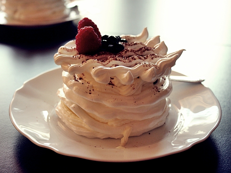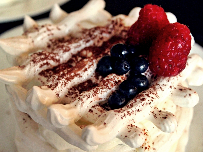Vacherin to tradycyjny francuski deser, delikatny, słodki, idealny na lato. Składa się z lekkich bezowych pierścieni, wypełnionych bitą śmietaną z owocami, niby takie to proste, ale jak cieszy. Najważniejszym etapem przygotowania jest dobre wysuszenie bezy, jeśli to nam się uda to sukces murowany. Polecam.