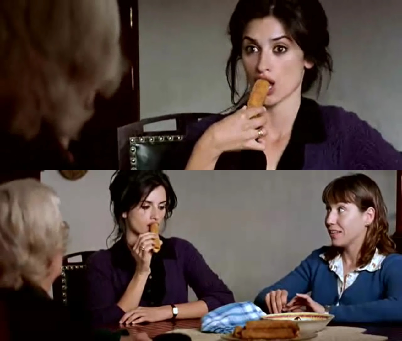 Restauracja, którą otwiera Raimunda od razu zyskuje wielu klientów. Dania które są tam podawane to tradycyjna hiszpańska kuchnia: Mantecados Manchegos (kruche ciastka), Tortilla y morcilla (tortilla ziemniaczana z kaszanką), Carne de cerdo (wieprzowinę) i Ensalada (sałatkę). Do tego drinki m.in. mohito i margarita. Mnie zaciekawiły rurki, które je Raimunda na początku filmu, gdy wraz z córką i siostrą odwiedza chorą ciotkę Paulę. Doszukałam się informacji, że są to hiszpańskie barquillos, czyli rurki z kruchego ciasta smażone, a następnie obtaczane w cukrze. Znalazłam kilka hiszpańskich przepisów na te rurki, różniły się kilkoma szczegółami, więc wyśrodkowałam to nieco i stworzyłam własną wersję. Muszę przyznać, że moje rurki nie są tak urodziwe jak te filmowe, ale myślę że to kwestia wprawy ;)