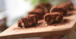 ** można użyć gotowych biszkoptów dostępnych chyba w każdym sklepie lub zrobić własne, także według przepisu Johnsona. Ale wtedy deser nie będzie już ciastem bez pieczenia :). Uzyska za to nieco inny (według mnie ciekawszy), lekko pomarańczowy smak. Przepis podaje poniżej. Z podanych proporcji zostanie kilka biszkoptów do zjedzenia :).