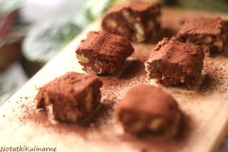 50g orzechów laskowych, uprażonych, obranych ze skórki* i grubo posiekanych - po niewczasie zauważyłam brak takowych.. zastąpiłam je 30 g pistacji i uzupełniłam prażonymi płatkami migdałowymi...