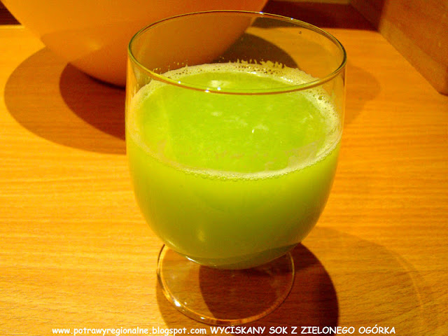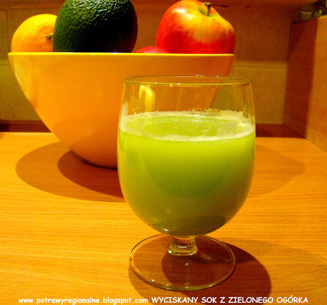 Ogórki są silnie moczopędne. Są przydatne w regulowaniu ciśnienia krwi. Dzięki zawartości potasu ogórki poleca się przy wszystkich rodzajach chorób dróg moczowych, chorobach serca, którym towarzyszy opuchlizna, i przy reumatyzmie. Zaleca się je ponadto przy zaparciach i cukrzycy. Świeżo przygotowany sok z ogórków stosowany jest we francuskiej medycynie ludowej jako lek na gruźlicę. Ogórki są również korzystne przy chorobach nerek, a szczególnie kamicy nerkowej powstałej na skutek odkładania się soli kwasu moczowego. Wiekszy ogórek umyłam i obrałam ze skórki. Pokroiłam na kawalki i przecisnęłam przez wyciskarkę. Wypiłam... ale powiem szczerze nie zachwycił mnie jego smak... Będę go na przyszłość mieszać z innymi warzywami.