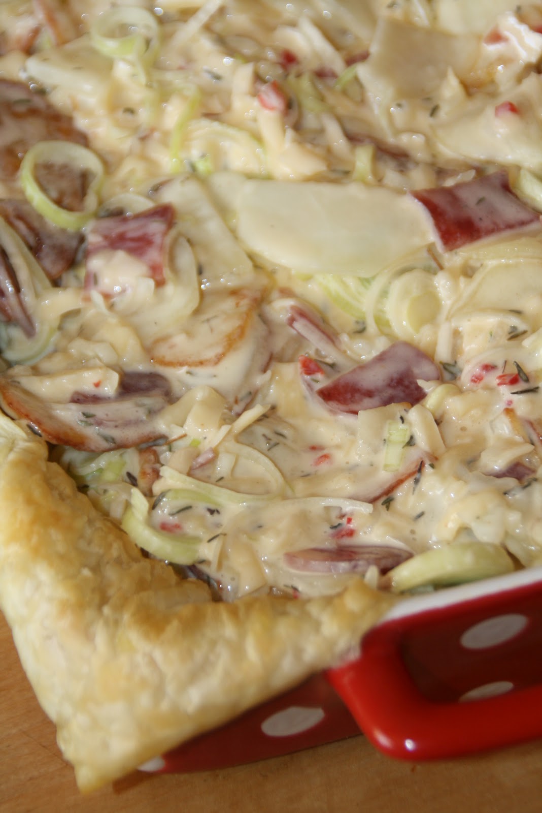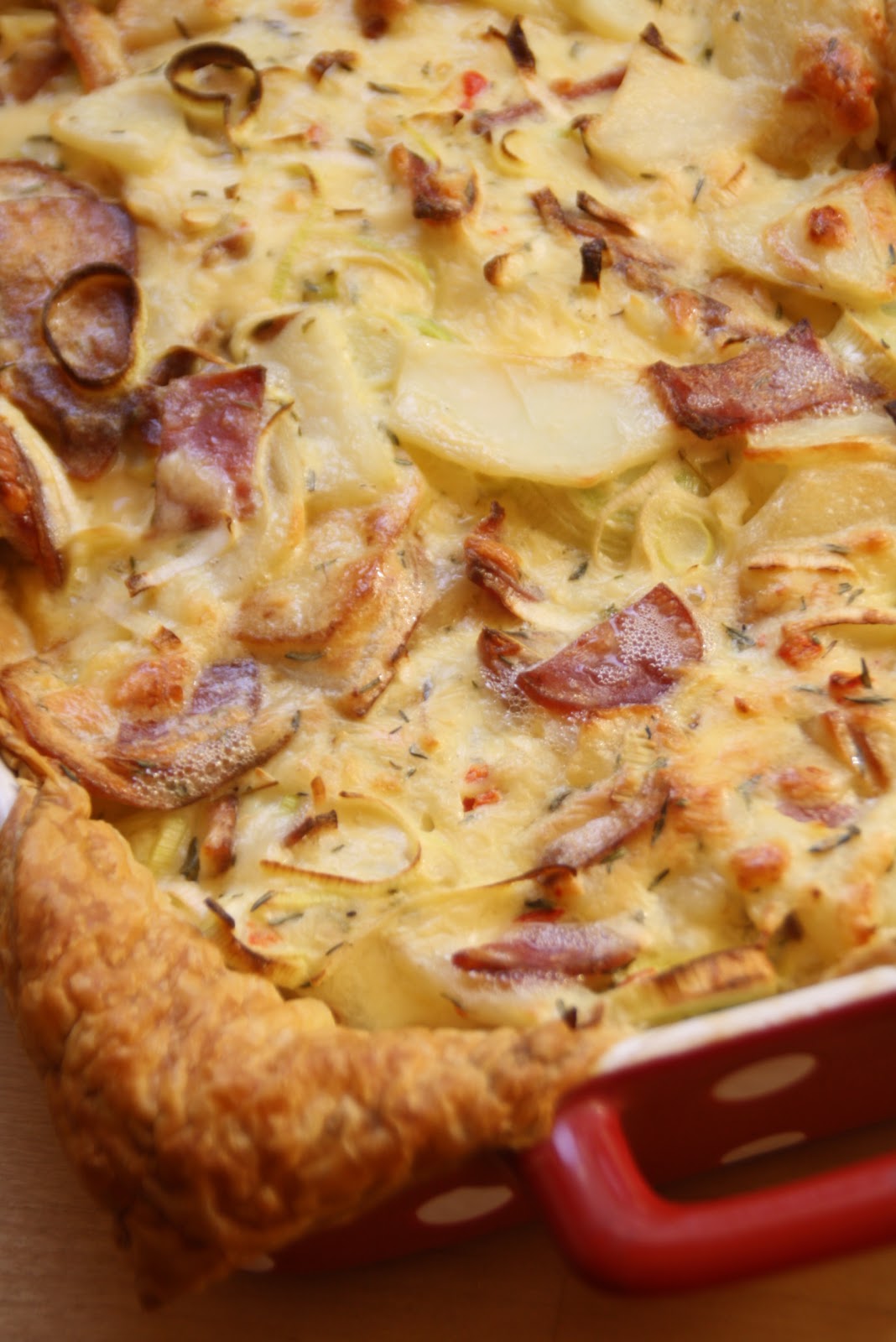 Zapiekanka na cieście francuskim z ziemniaczkami