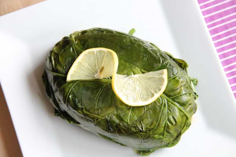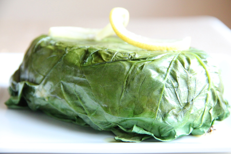 Potrawę przykryj dość ściśle pozostałymi liśćmi szpinaku: