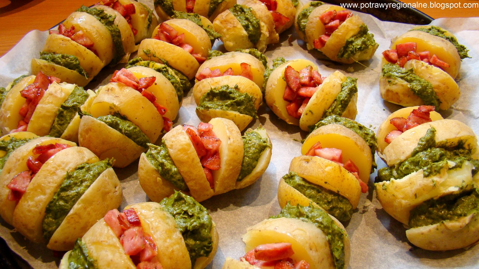 Teraz nadziewałam ziemniaki szpinakiem i kiełbaską.
