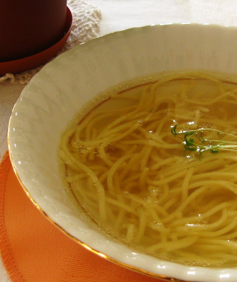 Myślami jestem juz w środku wiosny. Mniej jem, więcej się ruszam, sieję koperek na parapecie i rozsadzam fiołki do nowych doniczek. Różowe fiołki. Moje ulubione:) Tylko zupy wciąż robię zimowe. Na przykład – rosół z wiejskiej kury z dodatkiem wołowiny. Tak lubimy najbardziej. Jemy go albo z makaronem, albo bez makaronu – popijany z kubka. Część rosołu zamrażam.