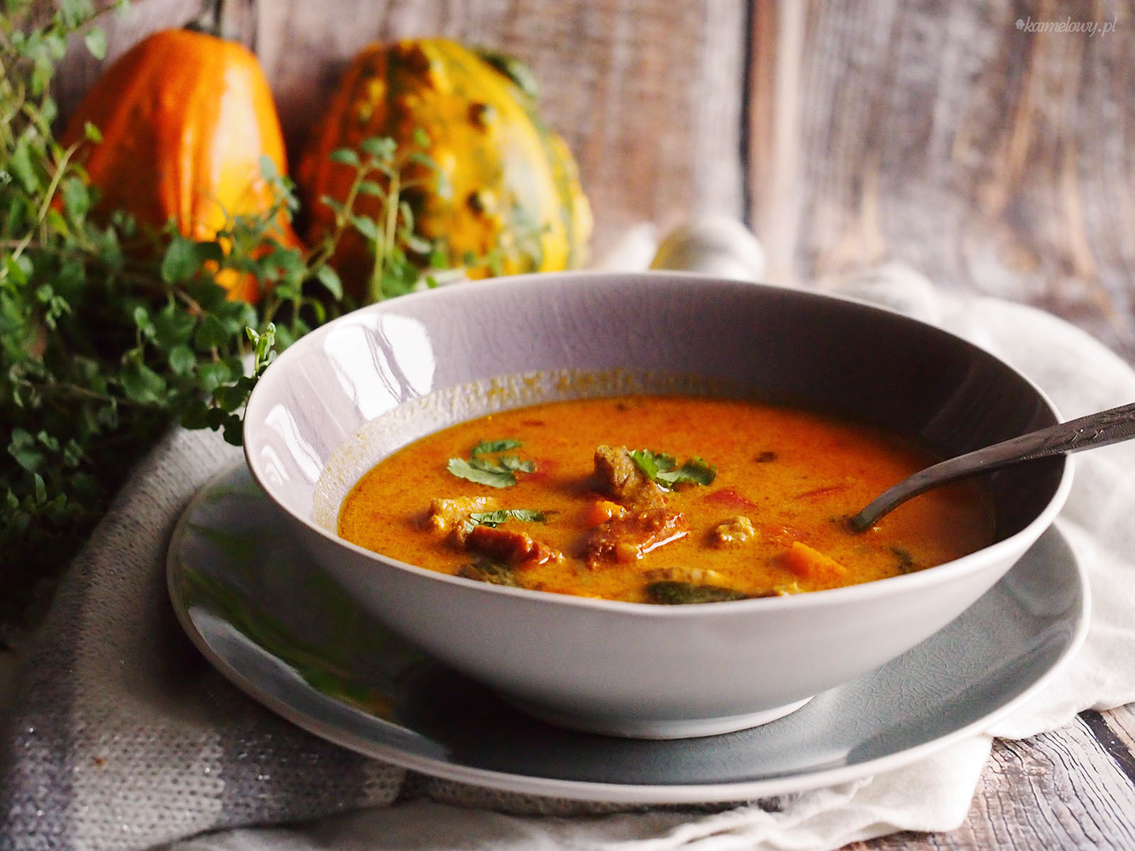 Zupa z dynią i chorizo